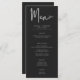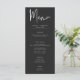 Ce menu mariage propose un thème sombre et sobre, simple mais étonnant. Un arrière - plan noir de fusain foncé est la toile parfaite pour votre texte de repas mariage. Le verso présente les prénoms du couple et la date du mariage. Unique et élégant, ce design peut être utilisé pour n'importe quelle saison. Créé par Simply Farmhouse Press.