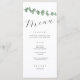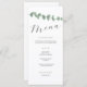 Ce design minimaliste élégant de menu de mariage comprend une branche d'eucalyptus simple finie avec typographie calligraphique classique. Un menu mariage classique pour habiller vos tables de manière harmonieuse et s'adapter à votre thème mariage tout au long de vos idées de décoration mariage.