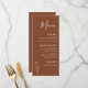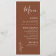 Menu minimaliste Mariage Bohème en Terracotta de style simple, moderne et minimaliste, menu mariage couleur terre cuite avec motif amovible dessiné.