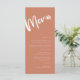 Il s'agit d'un menu minimaliste Mariage en terre cuite, qui ajoutera une touche d'élégance à votre Mariage ou à tout autre décor d'évènement. La carte de menu est doublée, et tout le texte est modifiable, il suffit de cliquer sur "Personnaliser ce modèle". Pour modifier la couleur arrière - plan, cliquez sur "Customiser plus loin".