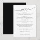 Menu de mariage simple et moderne avec une écriture moderne 'menu' dans un ange avec une police à empattements classique. Vos invités adoreront l'aspect minimaliste noir et blanc.
