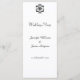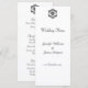 Ces menus de mariage personnalisés comportent un élément damassé noir et blanc d'inspiration vintage à l'avant et à l'arrière.