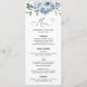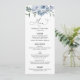 design floral et script moderne avec aquarelle bleu poussiéreux fleurs mariage carte menu