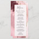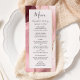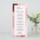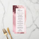 Ce menu mariage moderne et élégant est décoré d'un arrière - plan rose vif d'aquarelle orné d'une fausse parties scintillant dorée. Le texte s'affiche dans une élégante écriture manuscrite gris charbon et des polices de cuivre sur un rectangle broussailleux. La conception de l'agate est répétée à l'envers.