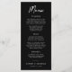 Cette carte de menu mariage donne un ton audacieux et inoubliable. Le script moderne et dynamique attire l'attention, tandis que le jeu de couleurs noir et blanc crée un contraste spectaculaire. Les menus sont présentés de manière claire, afin que vos invités puissent anticiper avec impatience les plaisirs culinaires qui les attendent à votre réception de mariage.