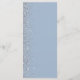 Le bord gauche de cet élégant menu mariage moderne présente un style de parties scintillant en faux argent. Le texte personnalisable combine écriture manuscrite blanche, copperplate et polices italiques sur un arrière - plan bleu poussiéreux. L'envers présente une parties scintillant bleu et argent poussiéreux assortie.