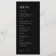 Moody black tendance minimaliste typographie personnalisées carte menu mariage.
