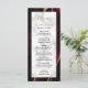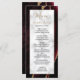 Cet élégant menu mariage moderne comprend un arrière - plan d'agate bordeaux aquarelle orné d'une fausse parties scintillant dorée. Le texte apparaît dans une écriture manuscrite élégante de couleur or et une police en cuivre noir sur un rectangle en marbre gris et blanc. La conception de l'agate est répétée à l'envers.
