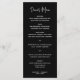 Menu moderne noir mariage avec un design simple avec en-tête dans une élégante typographie de script et votre menu dans une police sans serif minimaliste. Ce menu chic mariage s'intègre bien à tous les styles de mariage.