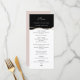 Menu mariage moderne, avec un design noir et blanc et un dossier rose vif en option.