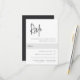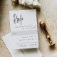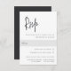 Conçu pour correspondre à nos invitations de mariage de Script manuscrit moderne. Une belle conception typographique avec une atmosphère minimaliste, avec un script moderne doux noir manuscrit et des lettres serif classiques. Personnalisez avec votre RSVP de date et de choix de repas en bas à droite.