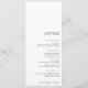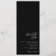 Menu avec remerciement à l'arrière : Ce menu de mariage élégant présente un design moderne et minimaliste avec un avant blanc et un texte noir élégant, parfaitement aligné en bas pour laisser de l'espace pour les étiquettes de nom découpées en haut. À l'envers, un message de remerciement bien pensé est affiché sur un arrière - plan noir frappant avec un texte blanc immaculé, ajoutant une touche personnelle et élégante. Idéal pour les couples à la recherche d'un menu raffiné et contemporain qui allie fonction et gratitude sincère.