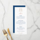 Couleur bleu foncé et or rose sur le menu du dîner mariage blanc. Modifiez ce menu de 3 plats avec votre propre libellé d'option de repas. Cimetière monographique à la main, formelle mais moderne, avec baies et feuilles entrelacés, et recouvert d'un motif de couronne cardiaque. © Dessin à la main original et design par Sarah Trett pour www.mylittleedenweddings.com exclusivement sur zazzle.