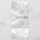 Classic Catholic Monogrammed Mariage Menu design présente votre texte dans une police élégante et argentée au sein d'une bordure en argent. Deux petites croix sont affichées en haut de chaque côté du cap. Reverse présente un élégant faux satin arrière - plan à l'origine du nouveau nom du couple, affiché dans une grande lettre blanche. En dessous, les noms du couple et la date du mariage sont affichés sur un support blanc.