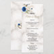 Menu Mariage Monogramme Fleurs Bleues Fantaisie Or
