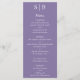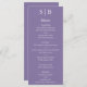 Faites savoir à vos invités ce qui se trouve dans le menu de votre réception de mariage à l'aide de ce menu classique à thème mariage lavande.