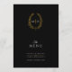 Menu mariage noir et blanc pour le dîner. Modifiez ce menu de 4 plats de base avec votre propre libellé d'option de repas. Feuilles ovales et monogrammes modernes mais classiques, noir, blanc et or. © Dessin ovale original et design par Sarah Trett pour www.mylittleedenweddings.com exclusivement sur zazzle.