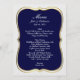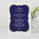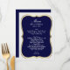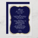 Carte de menu de réception de mariage chic faite dans un papier d'aquarelle blanc à l'aspect arrière - plan, avec un cadre doré bleu marine zone de texte décoratif. Le texte personnalisé, en blanc, est prêt à être personnalisé pour votre réception de mariage.