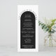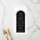 Menu moderne minimaliste et chic pour votre réception de mariage, soirée de fiançailles ou dîner de répétition avec "Eat Drink & Be Married" en élégante typographie serif, votre menu en simple typographie blanche dans un cadre en arc noir et vos noms et date mariage.
