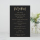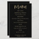 Budget Elegant Gold Script Mariage noir Menu Un design élégant en noir et or classique à un prix avantageux. Avec un script stylé pour Menu et personnaliser facilement le reste du texte. Les couleurs de police peuvent être modifiées via le menu de modification. Vous pouvez également modifier les couleurs arrière - plans si vous le souhaitez.