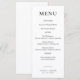Menu de Mariage élégant, moderne et chic noir et blanc avec script blanc. Personnalisez-le avec vos informations. Affichez la collection correspondante.