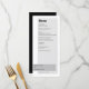 Menu simple, taille : 10,2 cm x 23,5 cm, papier : Signature mat