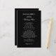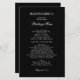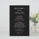 Menu mariage noir simple. Texte imprimé blanc dans les polices modernes avec des sections modèles faciles à remplir. Noms en haut et mariage en bas. Ajoutez des entrées, des plats, des entrées, du désert, etc. comme vous le souhaitez pour remplir le milieu du papier. Des remises en vrac s'appliquent. Voir le menu plus petit de 4 x 5 pouces ci-dessous.