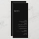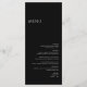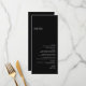 Élevez votre réception avec ce menu minimaliste personnalisé moderne Mariage noir. Conçu pour mettre en valeur votre cuisine, cet élégant morceau met en valeur tous les menus mariages. Parfaites pour les couples à la recherche d'idées de menu mariage chic, ces cartes de menu mariage personnalisables complètent les menus mariage élégants d'un mariage noir ou d'un mariage noir et blanc. Un design intemporel qui ajoute du raffinement à votre table tout en guidant les clients dans l'expérience culinaire du soir.