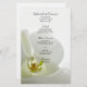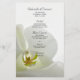L'élégant menu Mariage Veil Vide Blanche et Mariale peut être personnalisé avec les noms de la mariée et du marié, l'emplacement du lieu, la date et les détails du repas que vous servira à votre déjeuner de douche nuptiale, dîner de réception de mariage ou brunch de mariage. Ce menu mariage à fleurs personnalisé classe présente une photo florale d'une fleur d'orchidées phalaenopsis avec un voile de mariée blanc et un arrière - plan blanc éclatant.
