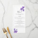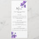 Une jolie carte de menu mariage, avec des branches d'orchidées violettes et des polices de caractères lettrées à la main. D'autres articles de papeterie sont disponibles dans ce design.