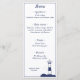 Elégant et simple menu mariage avec une illustration d'un phare dans les tons bleu marine pour un mariage marin et nautique !