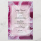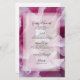 Customisez le joli Pink Peony Flower Mariage Menu avec les détails du repas que vous allez servir à votre déjeuner de douche nuptiale, soirée jardin ou dîner de réception mariage en ajoutant la salade ou premier plat, entrée ou deuxième plat et dessert ou troisième plat. Personnalisez-le avec les noms de la mariée et du marié, l'emplacement du lieu et la date. Cet élégant menu mariage à fleurs présente une photo botanique numériquement peinte d'une fleur de pivoine rose magenta.