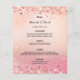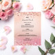 Une carte élégante et séduisante pour les mariages. Personnalisez et ajoutez vos noms, votre date et le menu mariage. Arrière - plan rose doré et rose, décoré de confettis, il est décoré d'une décoration en dégradé.