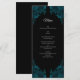Menu Chic & Stylish-Mariage. Le thème Turquoise de la Mariage Rose est un mélange d'accents floraux modernes et traditionnels avec un contraste turquoise de roses et mettre en valeur l'arrière - plan noir à merveille. Ces fleurs élégantes sont parfaites pour tous vos besoins en papeterie et décor mariage. Ce beau design conviendra surtout aux mariages où l'on a choisi d'incorporer un peu de turquoise, et de bleu-vert foncé. Conçu pour se coordonner avec notre Elégante Collection de Mariages Rose Turquoises, ce menu personnalisable propose des Roses Turquoises exquis au texte contemporain. Pour une personnalisation plus avancée de cette conception, par exemple modification de la disposition, de la police ou de la taille du texte, cliquez sur le bouton PERSONNALISER ci-dessus.