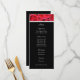 Des roses rouges vifs habillent le haut de cette carte de menu mariage. Votre texte est sur un arrière - plan noir dramatique, et est séparé de l'image rose par un "ruban" argenté. Le dos de la carte est noir. **Veuillez noter que l'image est imprimée sur la carte, qui ne contient ni tissu ni ruban.