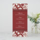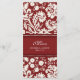 Elégant menu de dîner de mariage dans élégant rouge et crème de blanc classique motif floral damask, personnalisable avec vos détails de dîner, disponible dans une large gamme de produits mariages assortis.