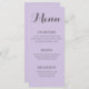 Ce menu simple mariage violet offre un design épuré et minimaliste, parfait pour un cadre chic et moderne. Avec des lignes épurées et un texte facile à lire sur un riche arrière - plan violet, ce menu présente élégamment vos choix culinaires pour la soirée. Idéal pour ajouter une subtile touche de couleur à votre décor mariage, c’est un détail élégant et pratique qui s’ajoute à une variété de thèmes mariages.