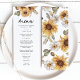Menu Rustique Mariage Tournesol. Ajoutez un peu de soleil à votre mariage avec ces magnifiques tournesols jaunes aquarelles peints à la main, des marguerites blanches et des feuilles verts sauge et couleur terre cuite. Idéal pour un mariage romantique d'automne rustique ou un mariage d'été en plein air dans un jardin, ces magnifiques menus mariages boho chic vous donneront le ton pour votre journée spéciale. Trouvez des produits de coordination dans Rustic Watercolor Sunflower Wedding Invitations.