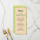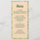 Un menu de mariage floral vert personnalisé avec une bordure plante tropicale, avec au centre un broussailleux (ou abricot) et un dos vert citron avec un motif en feuilles tropicales. Tous les détails peuvent être customisés à vos propres détails alimentaires mariages.