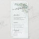 Vos invités adoreront cette carte de menu vert sage qui coordonne. Il présente un feuillage vert sauge rustique en aquarelle sur un arrière - plan d'aquarelle avec calligraphie gris foncé. Faites de cet article unique une partie de votre mariage fixe.