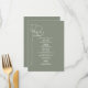 L'art en ligne rouge a inspiré le texte "Menu" en haut avec le texte personnalisé blanc et l'arrière - plan vert sage avec une fleur d'art en ligne simple à gauche.