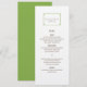Carte de menu simple et minimaliste Déco chic Mariage avec une bordure décorative moderne d'art vert. Ce menu classique et élégant est facile à customiser avec vos détails mariages. Pour plus d'options de personnalisation, cliquez sur Personnaliser.