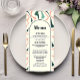 Le "Menu de mariage rétro vert menthe et rose avec arche en volutes" présente un mélange de charme vintage et de sophistication chic. Cette carte de menu présente des volutes fantaisistes en vert menthe et rose, créant une arche qui met en valeur les offres culinaires de l'événement. La mise en page contemporaine est équilibrée par le caractère ludique du design inspiré des années rétro, préparant le terrain pour une expérience culinaire à la fois élégante et invitante. Parfait pour les couples qui souhaitent ajouter une touche de couleur et de nostalgie à leur décor de table, ce menu est un régal visuel qui promet un voyage gastronomique mémorable.