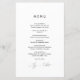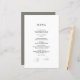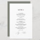 Menu minimaliste Mariage Invitations - avec police de texte manuscrite élégante et tendance et couleur verte sage. Le revers de cette carte de menu élégante est vert sage.