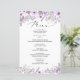 Cette élégante Carte Menu de notre collection Lavender Pressed Floral présente des flores d'aquarelle violette aux délicates vignes verdoyantes, associées à une police de caractères de script moderne. Parfait pour toute saison. Pour effectuer des modifications anticipées, sélectionnez Personnaliser -> Modifier à l'aide de l'outil de conception.