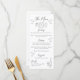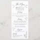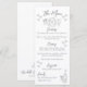 Menu du Mariage blanc et gris inspiré d'Europe. Cette carte mariage enchanteresse présente un design charmant inspiré de l'esthétique italienne, française et européenne. L'illustration d'un lieu dessiné à la main est accrochée au sommet, tandis qu'une bouteille de champagne et un verre au fond sont rehaussés de coeurs épars pour une touche romantique et élégante. Le menu principal met en valeur les détails de votre menu dans un mélange de script manuscrit et de polices simples en gris doux, offrant une sensation fantaisiste mais raffinée à votre célébration. Sur le dos, les noms de la mariée et du marié et la date du mariage sont soigneusement affichés dans des tons gris assortis, ce qui en fait un joli souvenir pour vos invités. Entièrement personnalisable, la conception vous permet d'adapter le texte et la palette de couleurs pour compléter votre thème mariage. Idéal pour les réceptions de mariage, les dîners de répétition, les douches nuptiales ou une soirée de fiançailles sophistiquée, cette carte de menu apporte un élément délicieux et personnel à vos événements spéciaux.