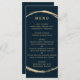 Ce menu mariage est composé d'un cadre en faux cercle doré et d'une calligraphie simple avec un arrière - plan bleu marine.