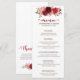 Menu Marsala Bourgogne Rouge Roses Florales Mariage Men