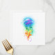Grande méduse irisée, artistiquement dessinée, brillante, avec de longues tentacules sur le blanc, peinte sur l'arrière - plan multicolore. Méduse arc-en-ciel.