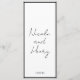 Este Menú de Bebidas Minimalista tiene un diseño minimalista y clásico con finos bordes negros, es perfecto para presentar la selección de bebidas de tu boda con elegancia. Ideal para quienes buscan un detalle moderno y refinado, esta tarjeta hará que cada brindis sea aún más especial. ¡Sorprende a tus invitados con una presentación impecable!